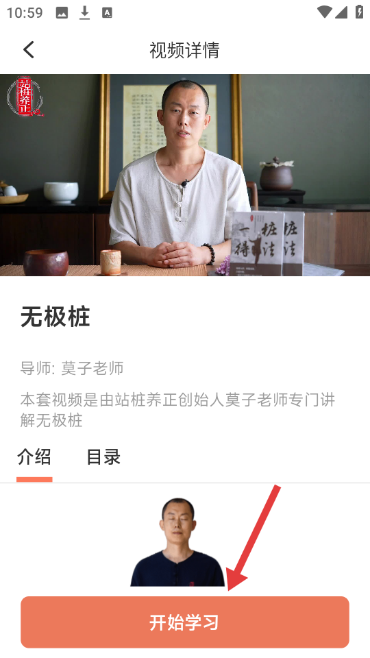 4、点击视频进入详情页,点击【开始学习】,跟随视频学习站桩方法。