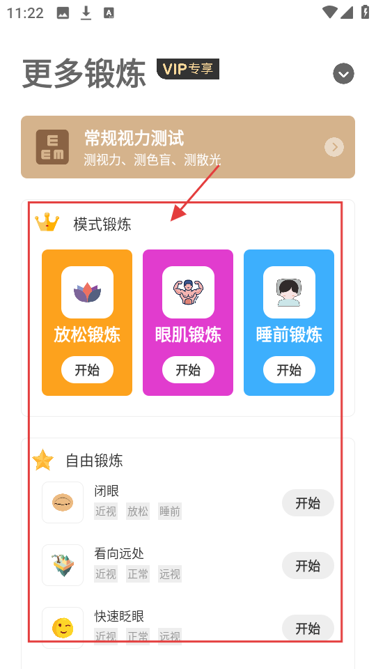 1、视力训练课程:提供丰富的眼部锻炼课程,包含详细的动作指导和跟练提示,帮助用户掌握正确的训练方法,提升锻炼效果。