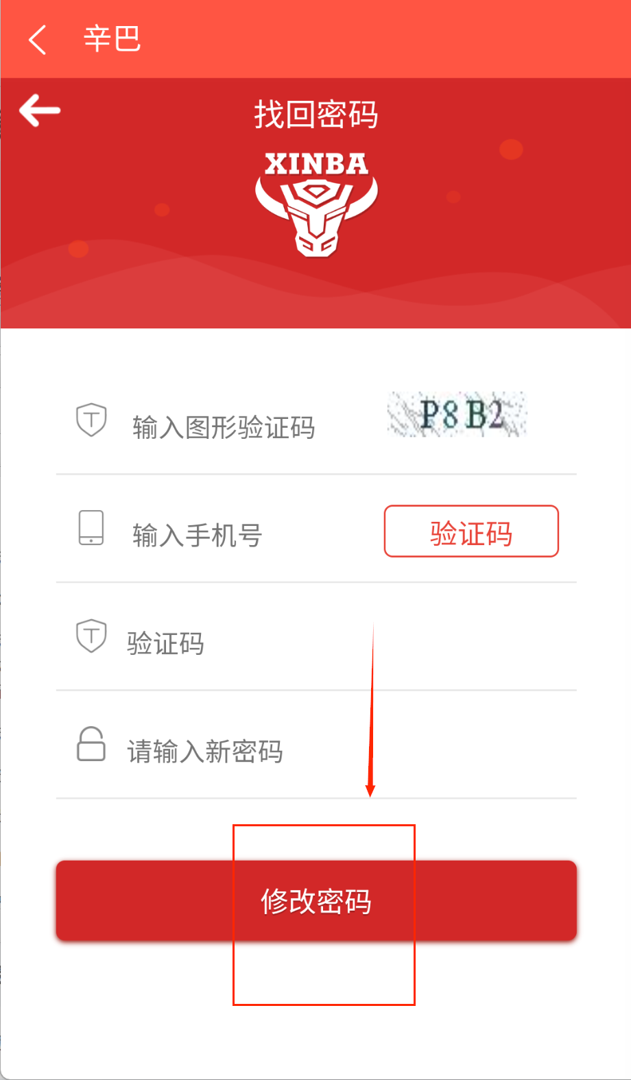 3、找回密码时要先输入图形验证码,再填写手机号获取短信验证码,最后设置新密码并点击修改密码按钮就能重新登录了。