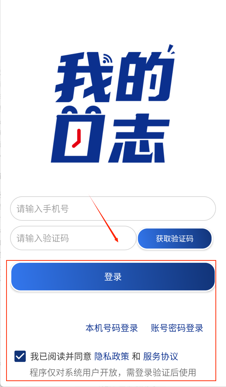 2、输入完手机号和收到的验证码后,仔细检查一遍有没有输错数字,然后就可以点击下方蓝色的登录按钮提交信息了。