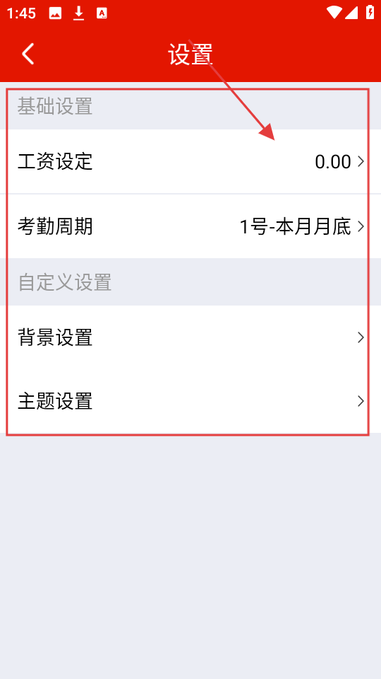 2、在【设置】页面,有【工资设定】【考勤周期】等选项,可根据需求进行基础和自定义设置。