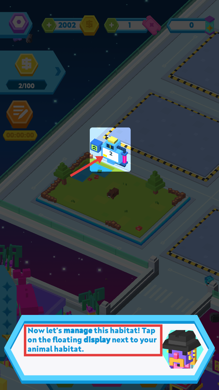 3、管理动物栖息地时,按照提示点击动物栖息地旁的悬浮显示界面,进行栖息地的管理操作。