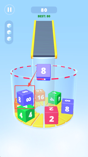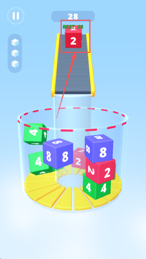 2、滑动控制平台:在屏幕上滑动手指,移动杯子平台调整位置,让数字立方体精准落至目标区域,为合并创造条件。