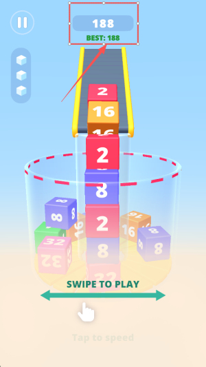1、开启合并之旅:进入游戏熟悉杯子平台滑动操作,了解数字立方体合并规则,明确 “合成更大立方体” 目标,开启首局挑战。