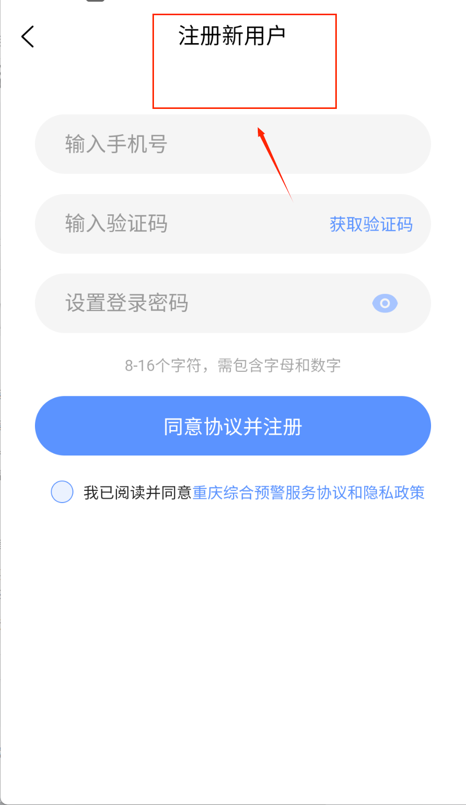 3、如果是新用户需要注册账号,可以在登录页面选择注册新用户选项。注册时需要输入手机号、获取验证码,并设置符合要求的登录密码。