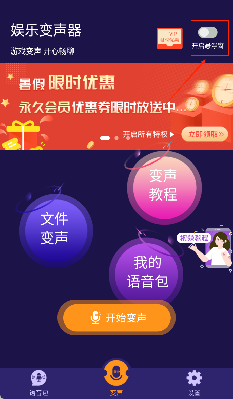2、悬浮窗设计经过特别优化,体积小巧不遮挡游戏界面,支持自定义位置和透明度,一键开启变声不影响游戏操作。