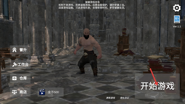 1、进游戏前可先了解【晋升】【工作台】【仓库】【商店】这些功能,再点击【开始游戏】,为后续冒险做准备。