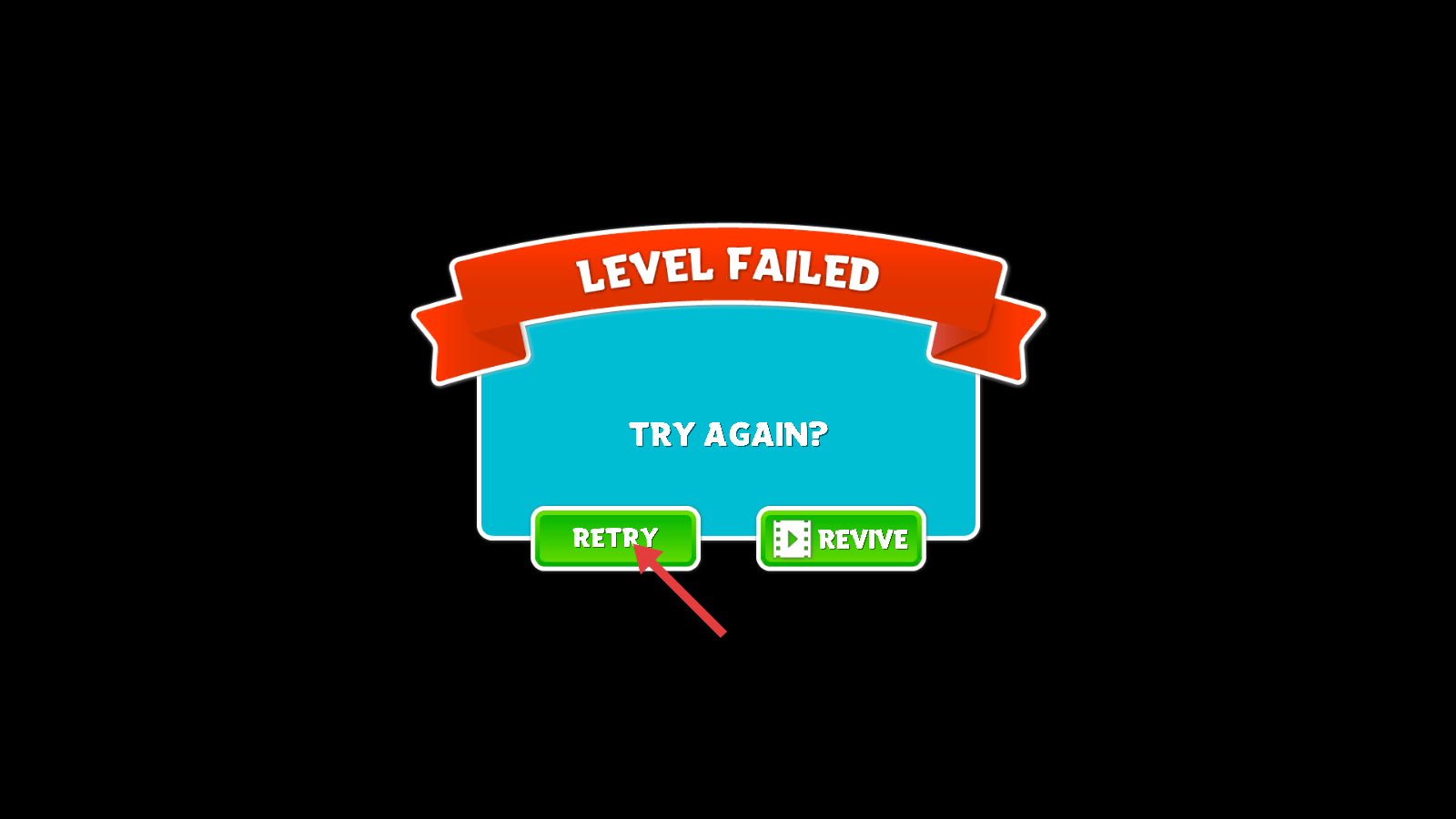 4、若出现【LEVELFAILED】关卡失败提示,可点击【RETRY】重新挑战关卡,或选择【REVIVE】复活继续,快速重返游戏进程。