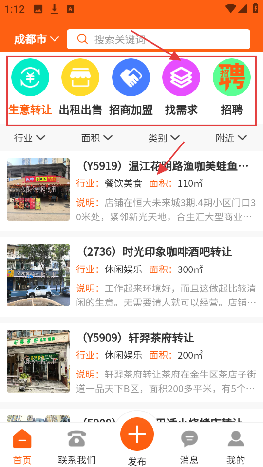3、服务场景多元:覆盖餐饮、零售、服务等多个行业,支持店铺出租、生意转让、招商加盟等多种需求,满足不同用户场景。