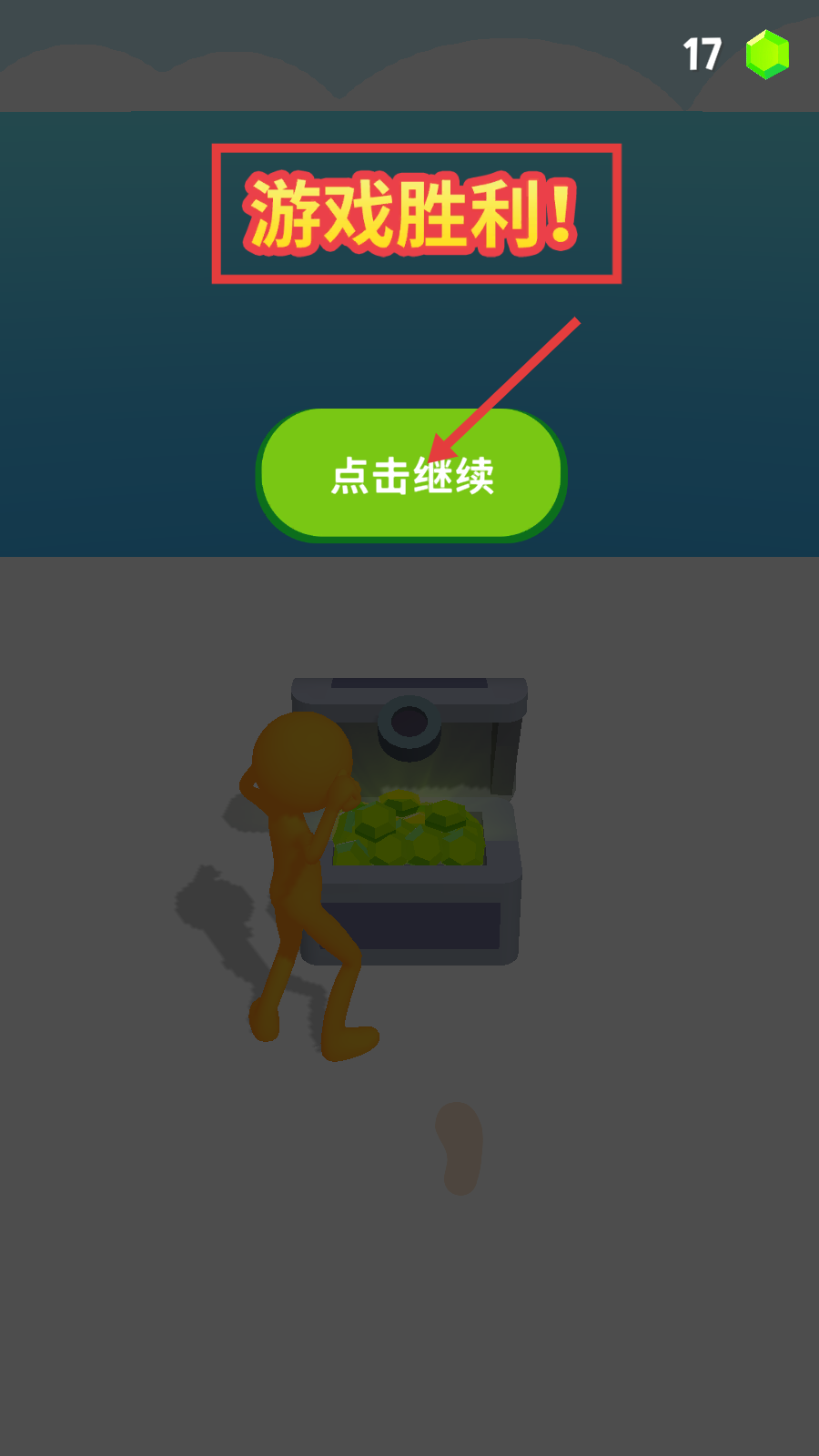 4、达成目标后会显示【游戏胜利!】,点击【点击继续】可继续后续游戏内容。