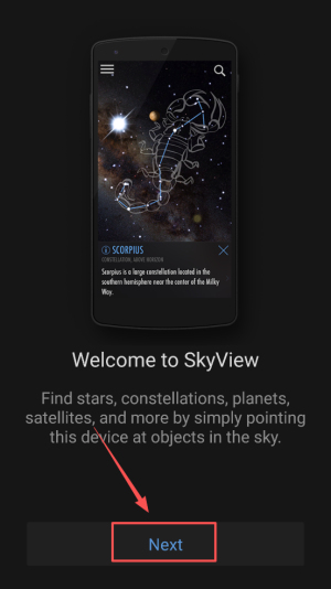1、进入游戏:点击“Next”按钮,进入SkyView应用。