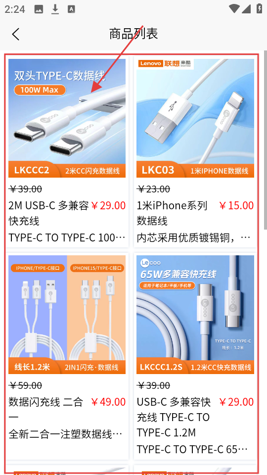 2、进入商品列表,浏览各类数据线,对比价格、规格,挑符合需求的那款。