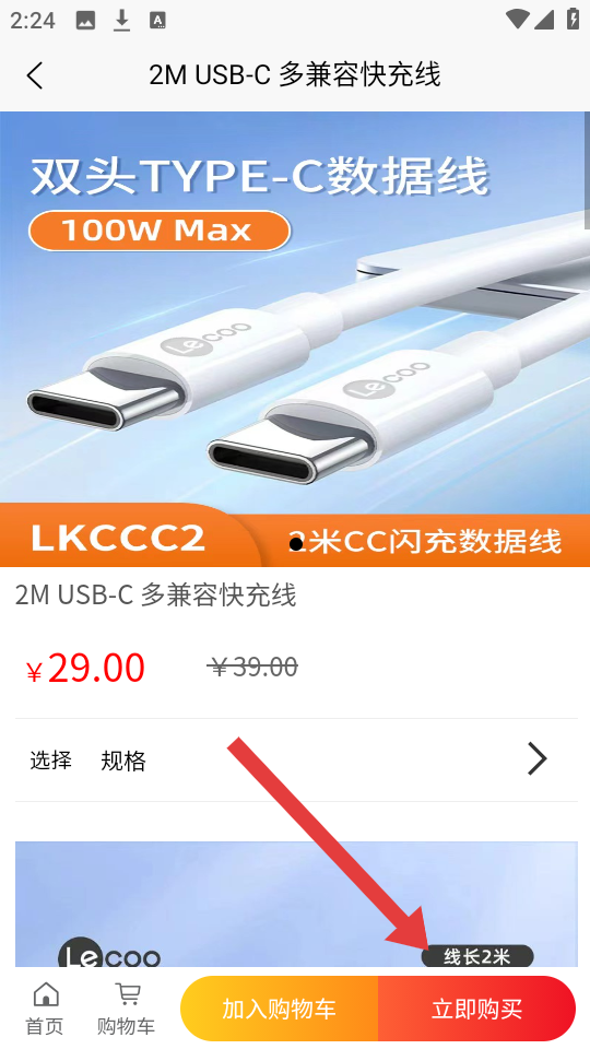 3、选中心仪数据线后,进入详情页,看价格和介绍,若要购买,点【立即购买】。