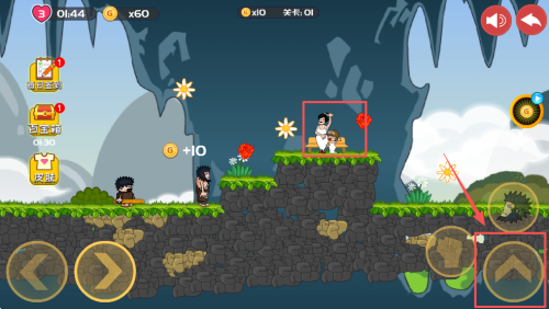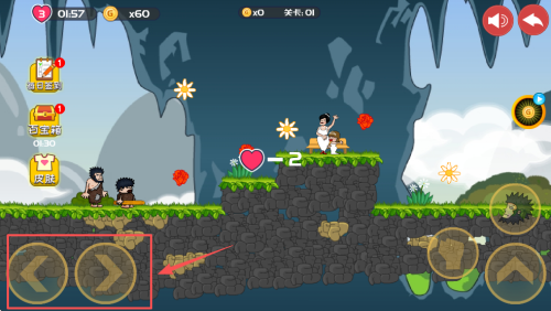 3、然后,通过点击左右箭头控制角色移动,接近目标。