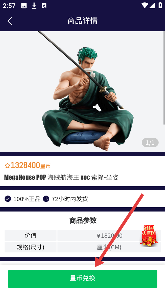 3、选中心仪手办,进入详情页,看价格和介绍,若要兑换,点【星币兑换】。