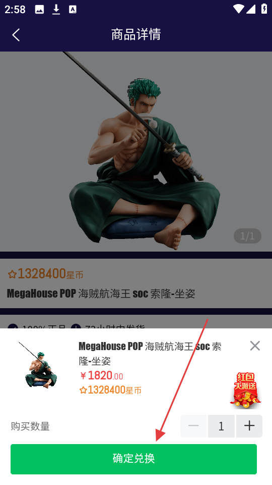 4、确认兑换后,选好购买数量,检查商品信息无误,点【确定兑换】完成流程。