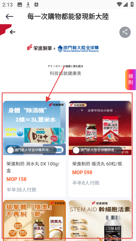 2、进入对应板块后,浏览商品列表,从【榮進製藥】的各类产品里,挑感兴趣的。