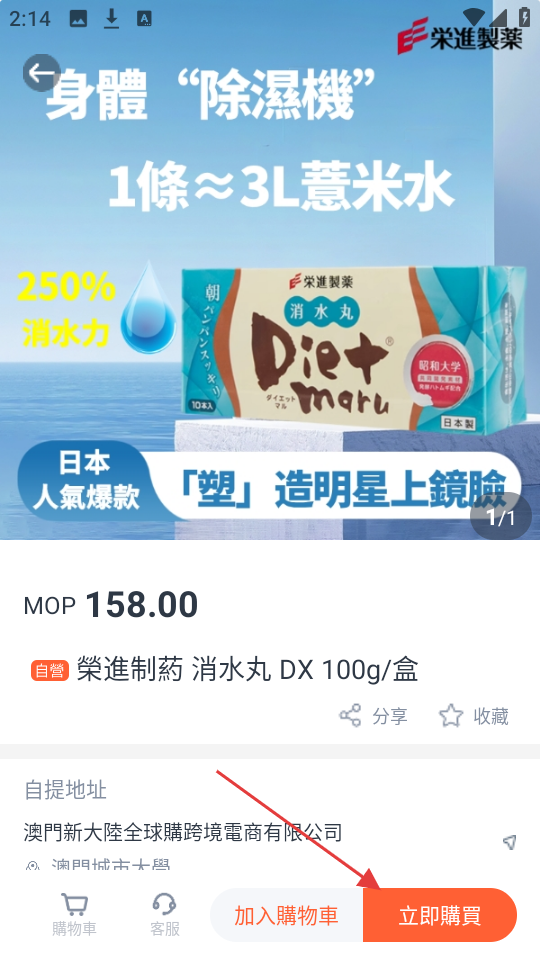 3、选中心仪商品,进入详情页,看价格和介绍,若要购买,点【立即購買】下单。