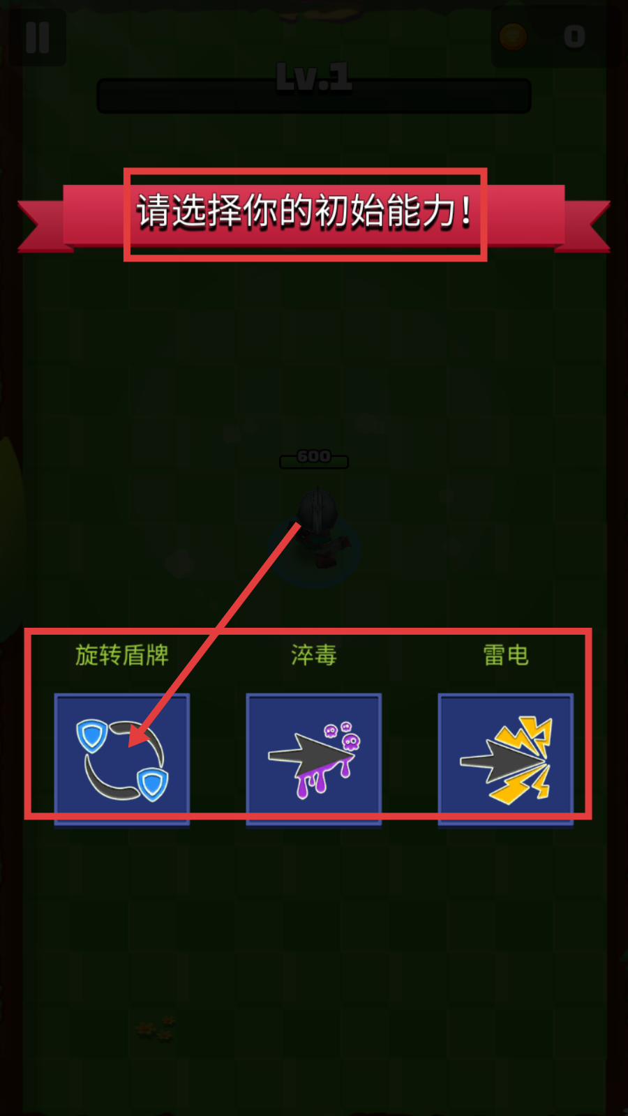 2、在初始能力选择界面,可挑选【旋转盾牌】【淬毒】【雷电】中的一种,选好后进入战斗。