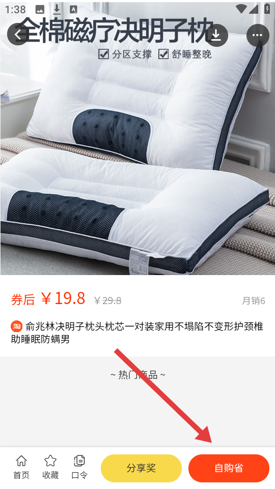 3、商品详情页确认想买,看价格和月销,若要自购,点【自购省】按钮。