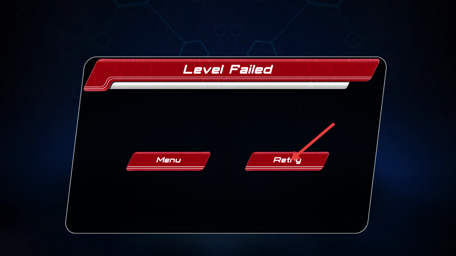 4、若关卡失败出现【Level-Failed】界面,点击【Retry】按钮可重新挑战关卡,不用返回主菜单,节省时间。