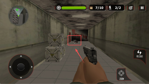 4、如何查看弹药?屏幕显示“7/10”为剩余子弹,点击“RELOAD”即可换弹。