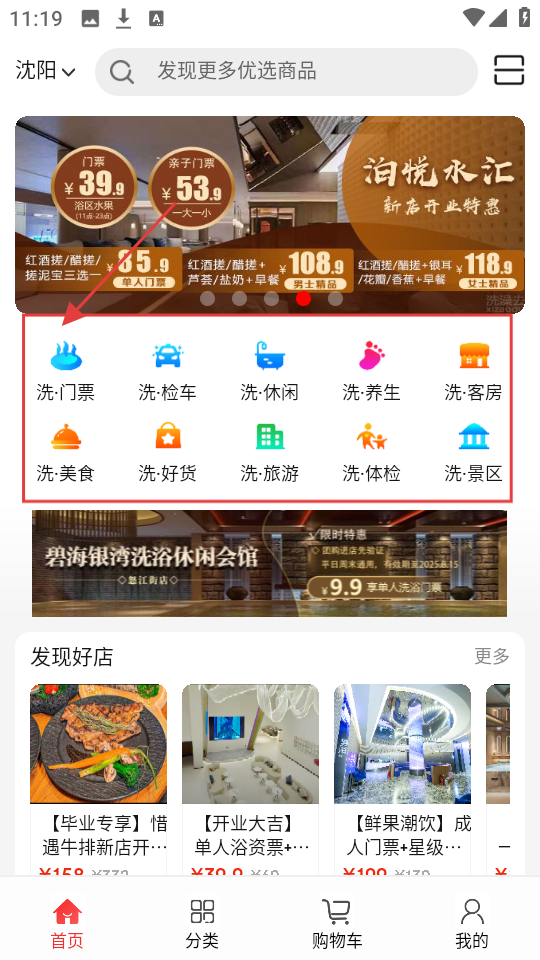 1、场景整合高效:将洗浴、餐饮、住宿、汽车服务等生活场景集中整合,无需切换多个应用,一站式解决用户多种消费需求。