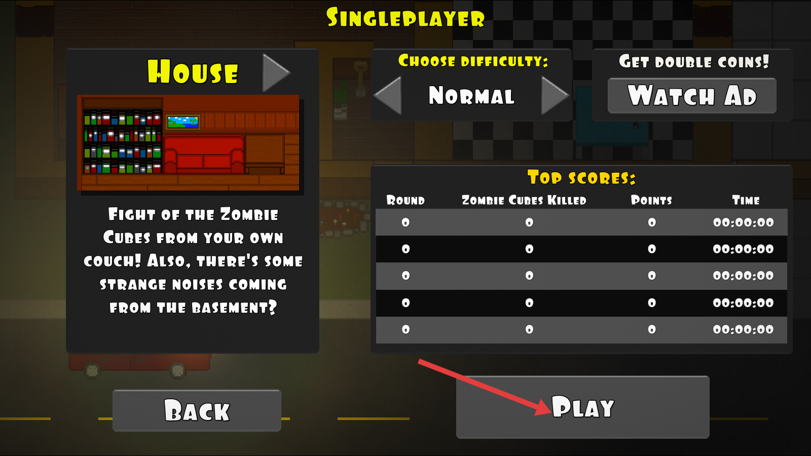 1、选择【Singleplayer】模式,将难度调为【Normal】,随后点击【Play】按钮即可进入游戏。