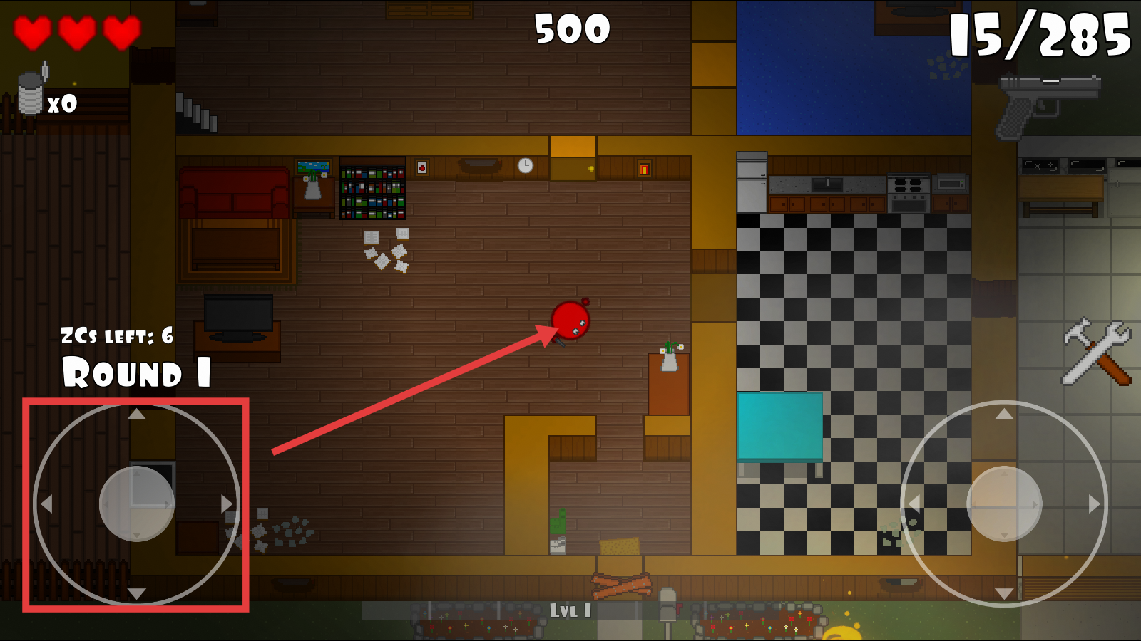 2、进入游戏后,通过左侧虚拟摇杆控制角色移动,在【Round-1】中探索房屋区域,熟悉场景布局。