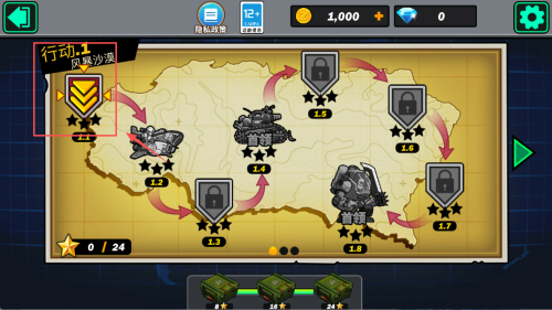 3、如何选择关卡?在地图界面点击“行动:1 贪泉沙漠”即可进入沙漠关卡。