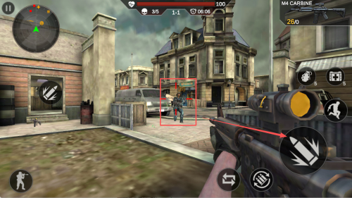 2、战场操作击杀:以第一人称视角操作角色移动,瞄准战场上的敌人开枪,遇到强大敌人时及时切换更强武器。