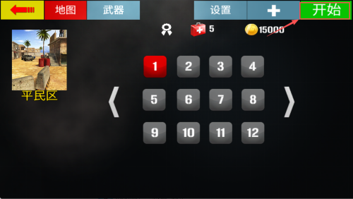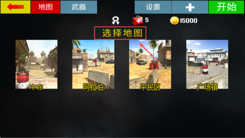 2、如何选择地图?在地图界面点击“中东”或“立伯”后点击“开始”即可锁定战场。