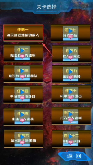 2、如何选择关卡?在“关卡选择”界面点击“任务一”或其他关卡后按“返回”可重选。
