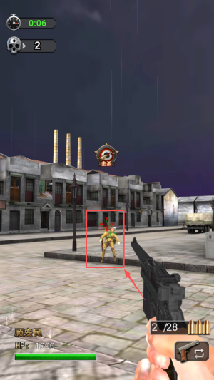 2、角色任务推进:以英雄角色身份承接射击任务,在上海滩场景中移动作战,瞄准敌人完成击杀,推进关卡进度。