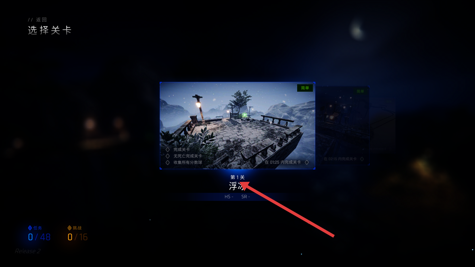 1、进入【选择关卡】界面,选【第1关-浮冰】,可留意【任务-0/48】【挑战-0/16】的目标,开始关卡挑战。