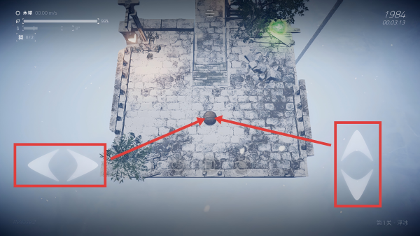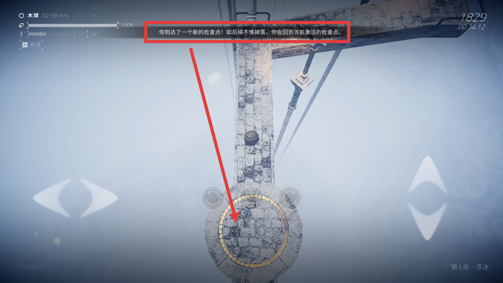 2、挑战中操控【木球】,利用左右两侧的箭头按钮,控制木球移动,朝着目标区域前进。