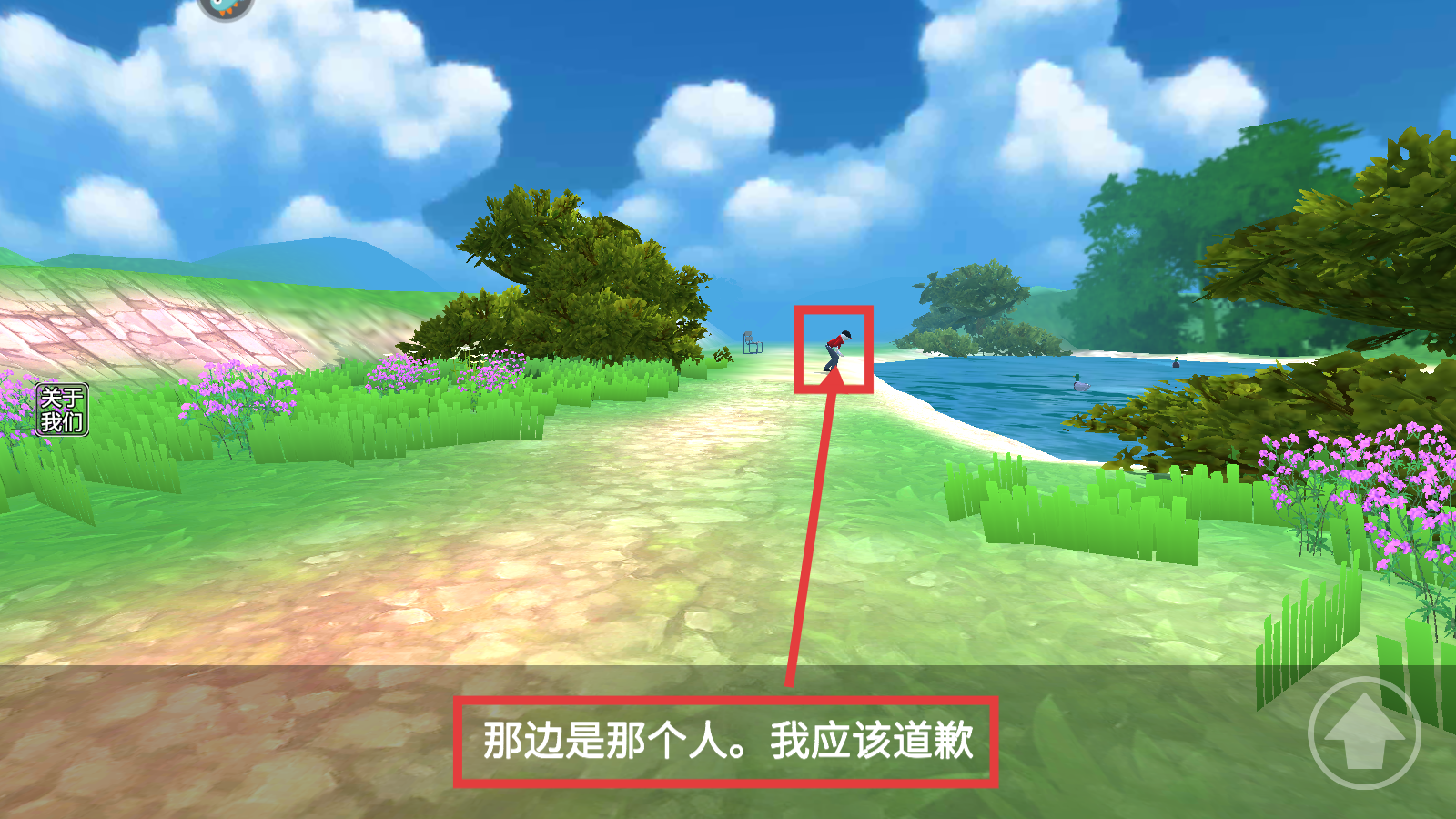 3、移动中看到远处的人物,触发“那边是那个人。我应该道歉”的剧情,可朝人物方向前进互动。