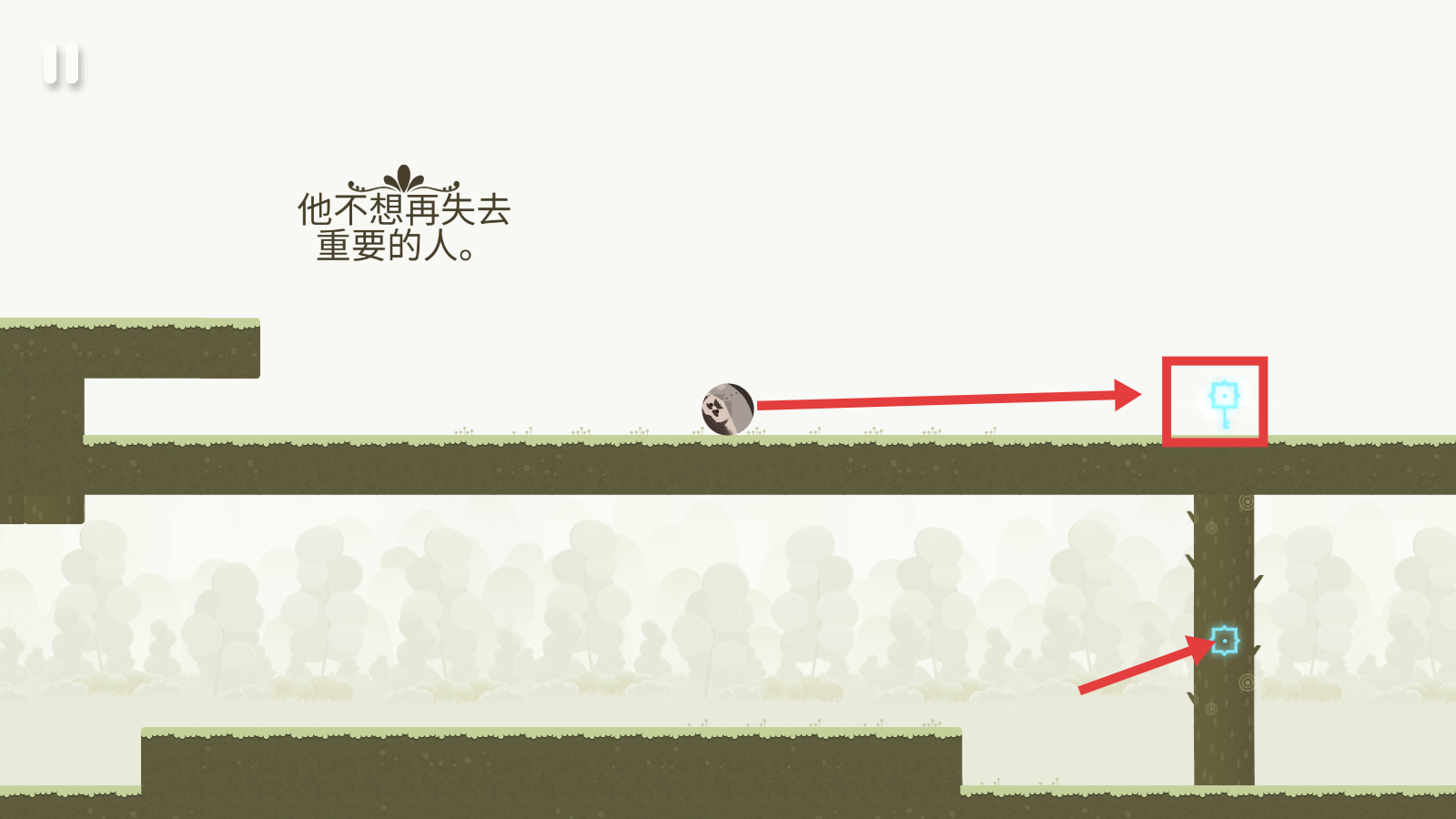3、推动角色向蓝色机关移动,触发“他不想再失去重要的人”剧情,同时尝试激活机关,探索场景。