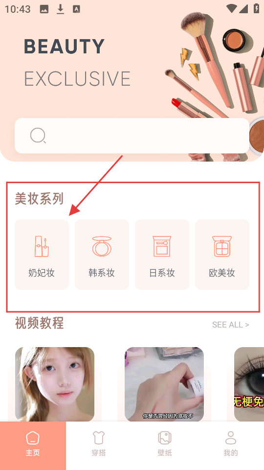 1、想学习美妆,先去主页美妆系列,从【奶妃妆】【韩系妆】等分类里,选想尝试的妆容类型。