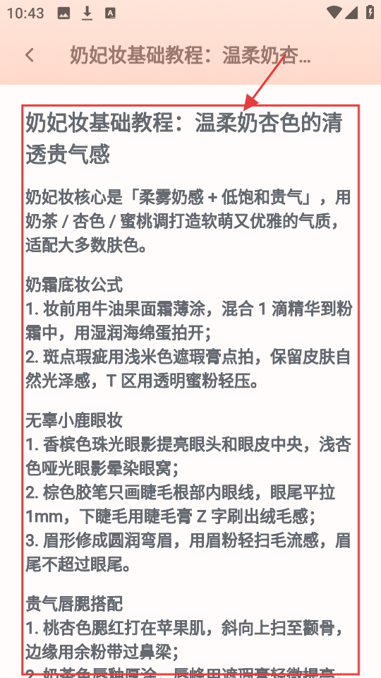 3、选好奶妃妆教程后,仔细阅读教程内容,像奶妃妆基础教程,学习底妆、眼妆等打造方法。