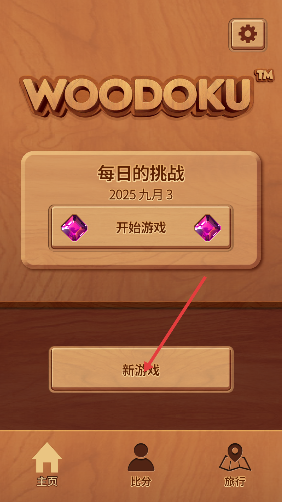 1、进入【Woodoku】游戏,点击【新游戏】,开启方块放置与宝石收集的挑战。