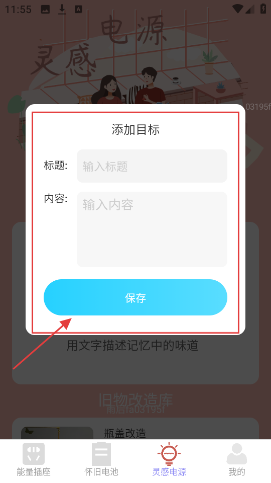 4、点添加后,在添加目标弹窗里,输入标题和内容,再点【保存】,完成气味记录添加。