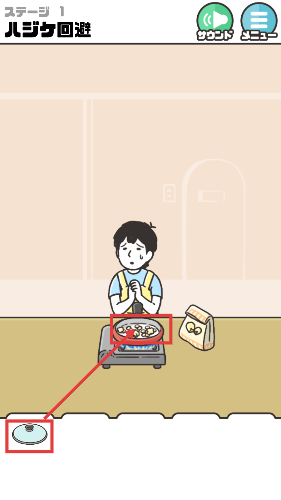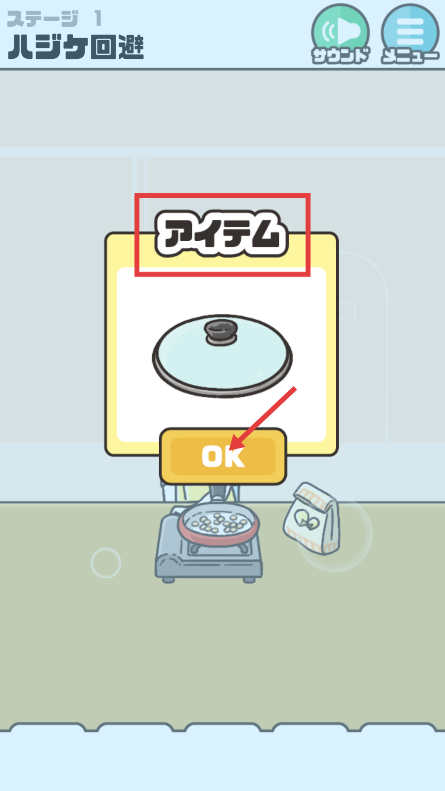 2、在道具选择界面,看到【アイテム-锅盖】,点击【OK】,选择该道具用于后续操作。