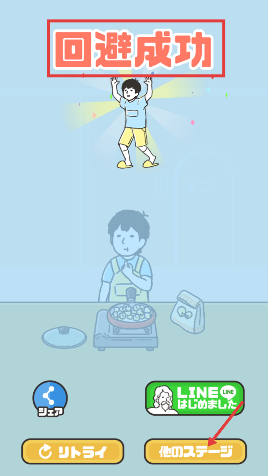 4、成功完成“回避”后,界面显示【回避成功】,可点击【他のステージ】,前往挑战其他关卡。