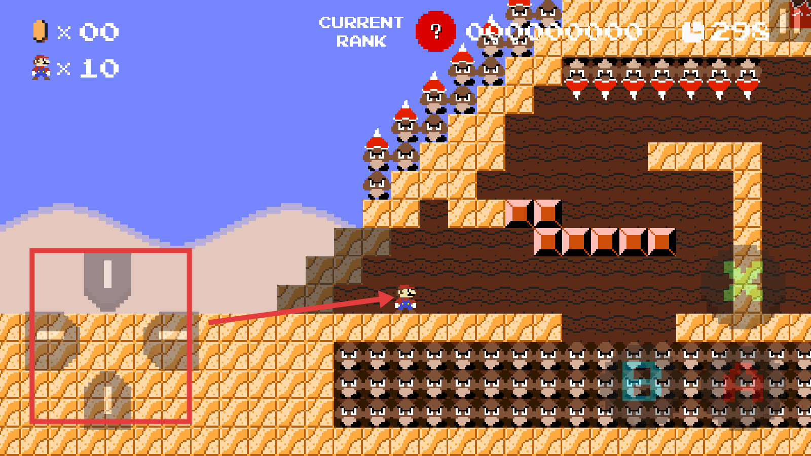 4、注意马里奥的生命数显示为【×10】,要合理利用生命,在遇到危险时尽量保全角色,持续推进游戏。