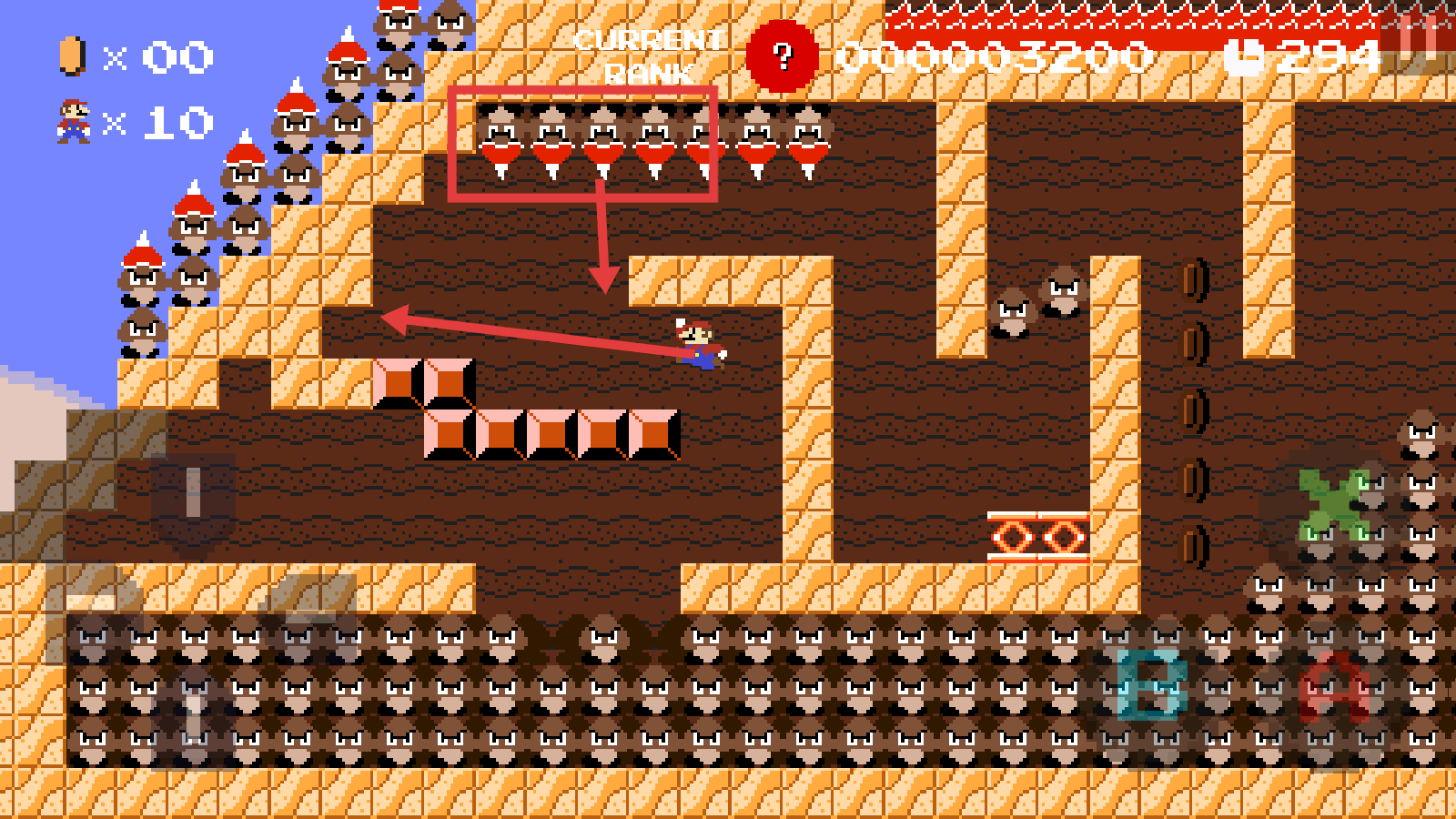 2、利用左侧的控制按钮来移动马里奥,在关卡中谨慎前进,熟悉移动操作以应对后续挑战。
