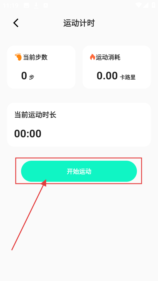 2、进入运动计时页,能看到当前步数、运动消耗等,点【开始运动】,即可开启运动计时。