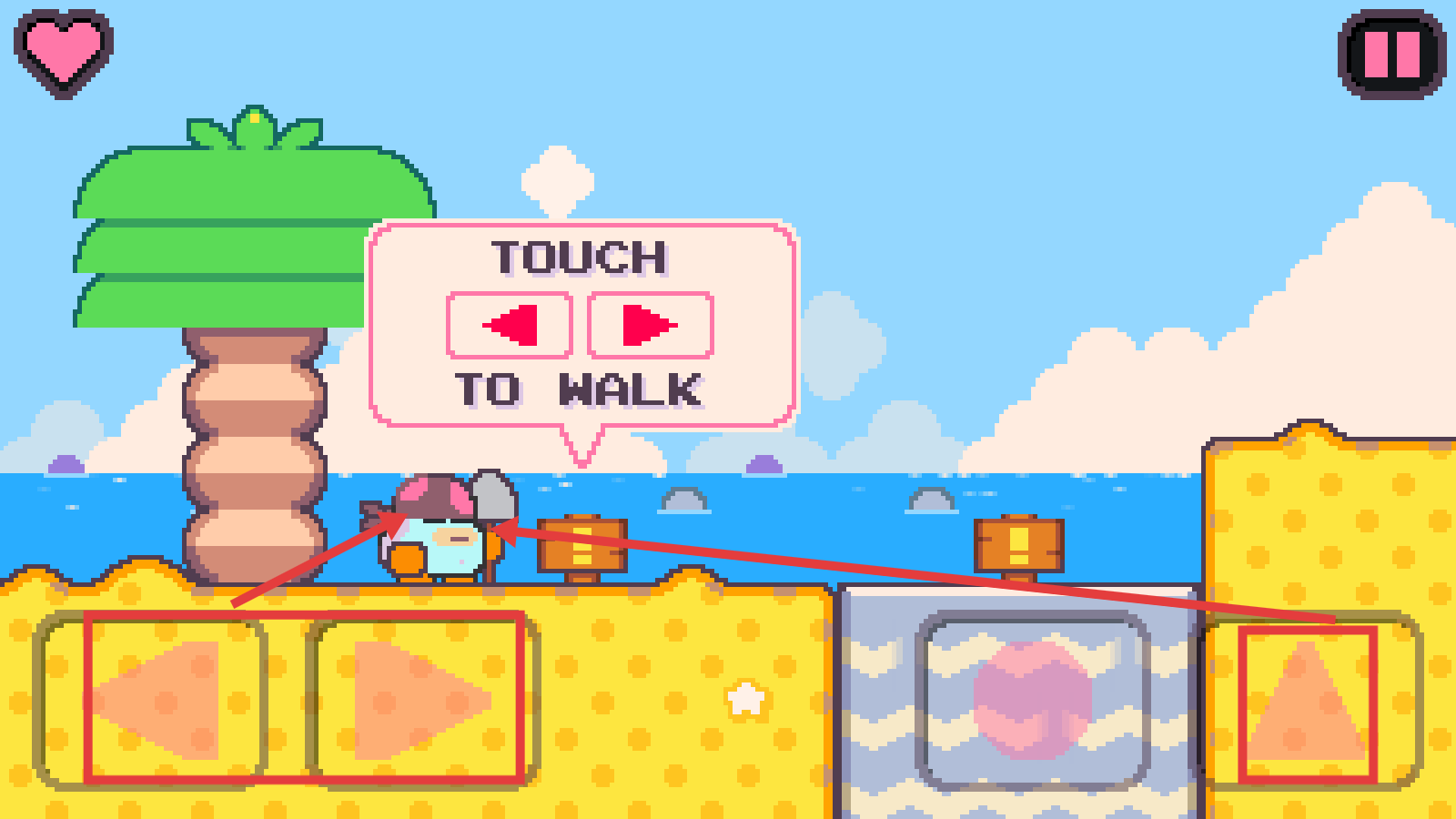 2、关卡里触摸左侧或右侧箭头按钮,控制角色左右移动,在场景中探索前进。
