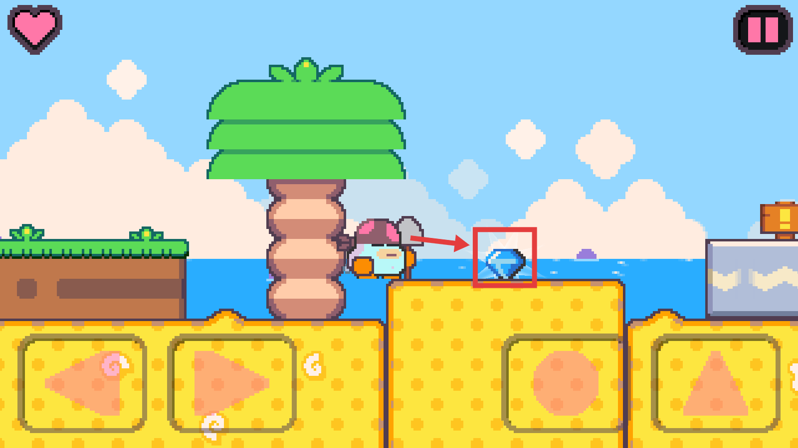 3、操控角色移动到蓝色钻石旁,收集钻石,同时留意场景中的障碍与道具,顺利获取目标物品。