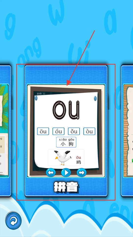 1、打开应用,选择要学习的内容,如点击【拼音】。